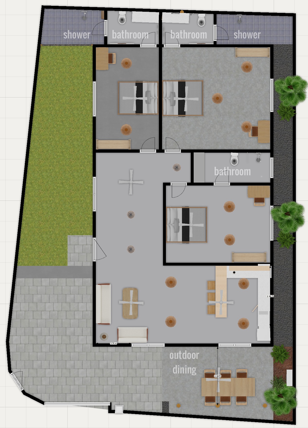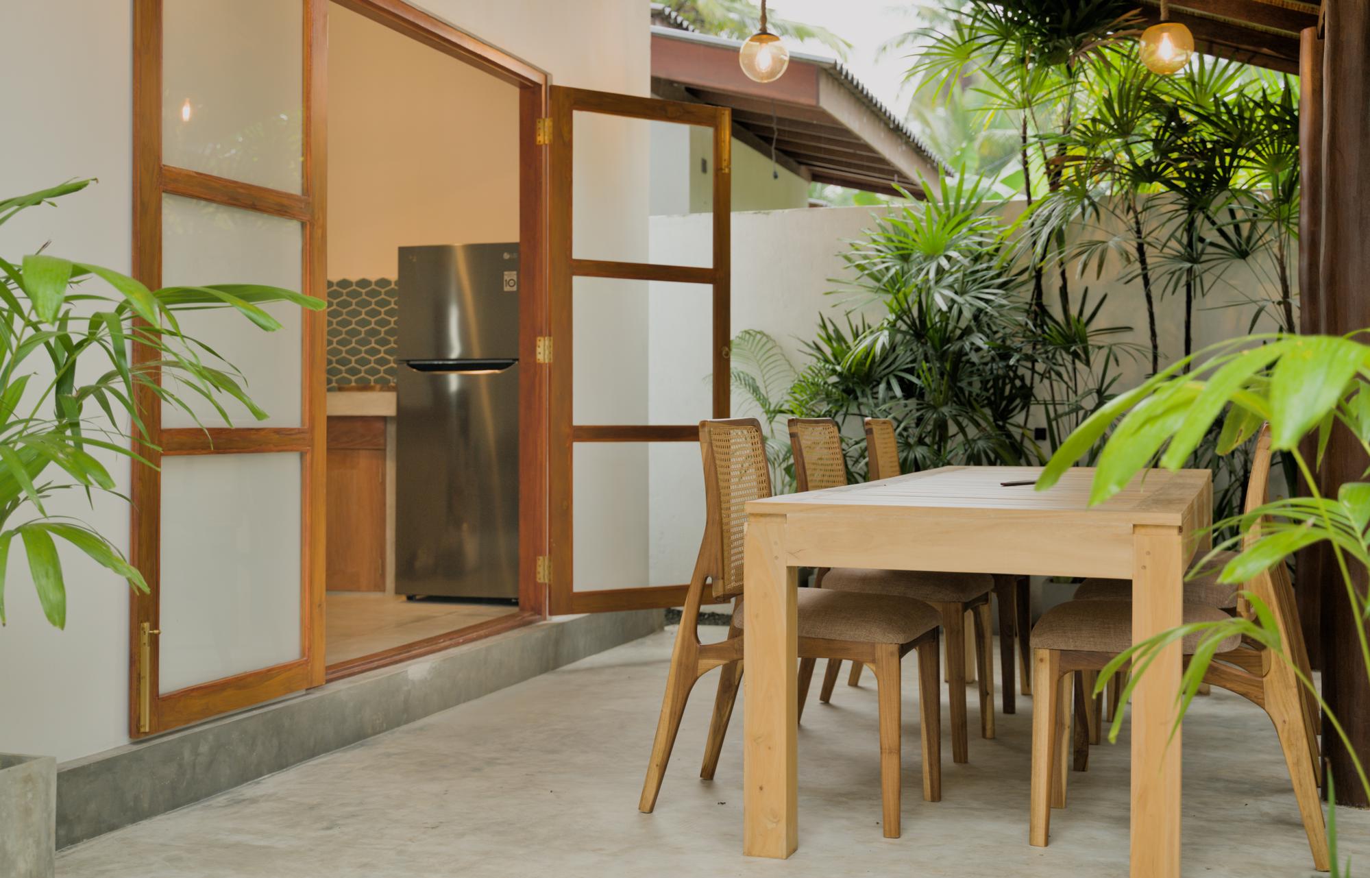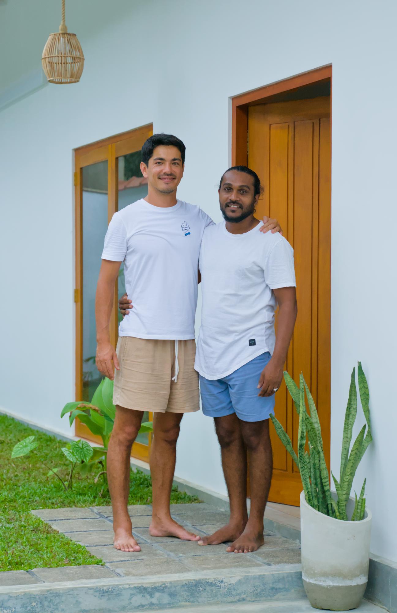 We are Prabath from Ahangama and Berni from Germany. We got to know each other in December '22 and after some time we figured out 2 things: That we get along very well and that we both enjoy creating nice experiences for people. So in March '23 we partnered together and started building the Remote Nest Villa. No big companies involved, just Berni designing the interior plan and the furniture and Prabath hiring people from the village and managing the construction.