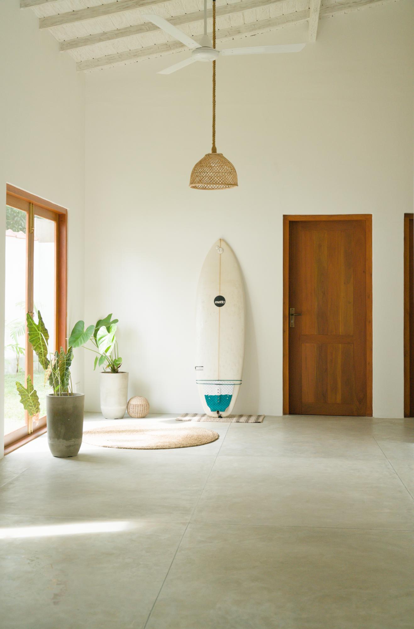Your home in the tropic town of Ahangama for relaxing, surfing and exploring the beautiful nature and bustling life around us. But not only can you wind down and relax, we also make sure that you can get your real life obligations done: We have fibre internet and ergonomic work spaces in each room. Wake and surf in the morning, hack away your tasks in the daytime. Enjoy the spacious kitchen and living area for relaxing and chatting or use the fully equiped kitchen to get creative and make some smoothies with tropic fruits. The area around us has a great offer for the evenings: Enjoy nice restaurants, meet laid back people in bars or in vibrant clubs, all reachable within max. 5 min of a scooter ride.